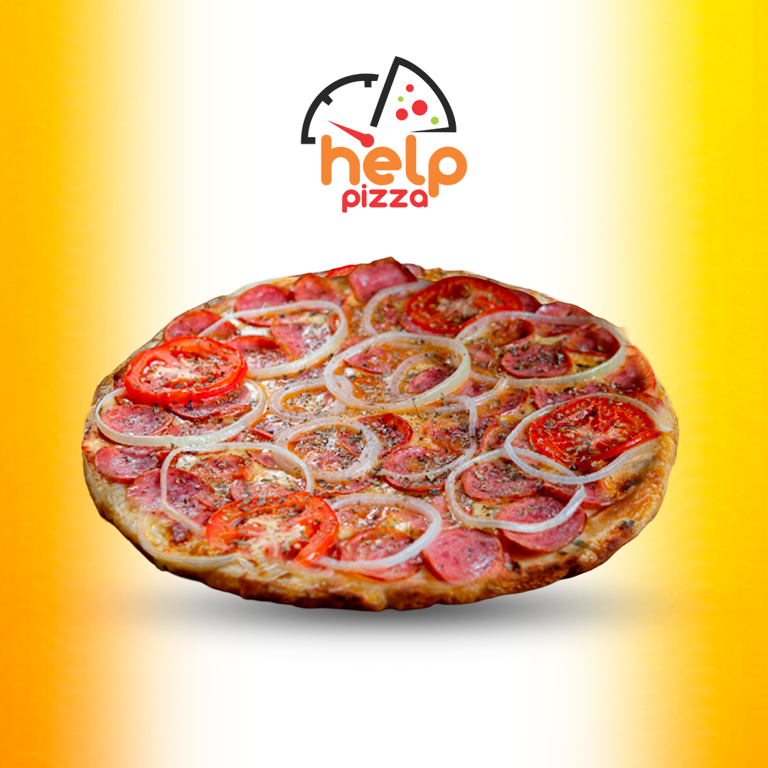 MASSA, MOLHO DE TOMATE, QUEIJO MUSSARELA, CALABRESA, CEBOLA, TOMATE E ORÉGANO