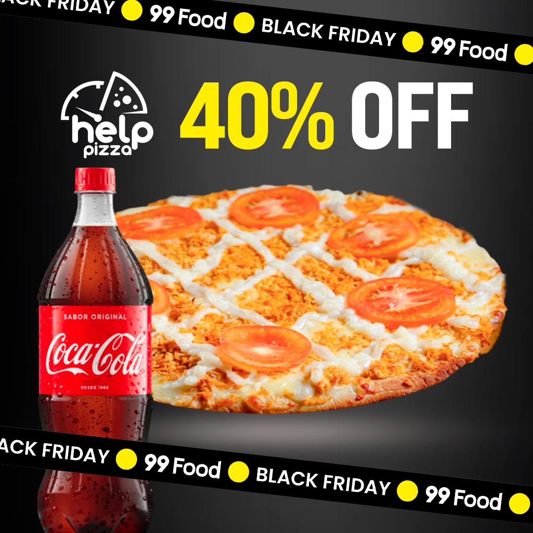 Deliciosa Pizza de "Frango com Catupiry, muçarela, molho de tomate, manjericão, tomate com aquela massa crocante que só a "Help Pizza" tem no capricho. Acompanha refri 1l a sua escolha.