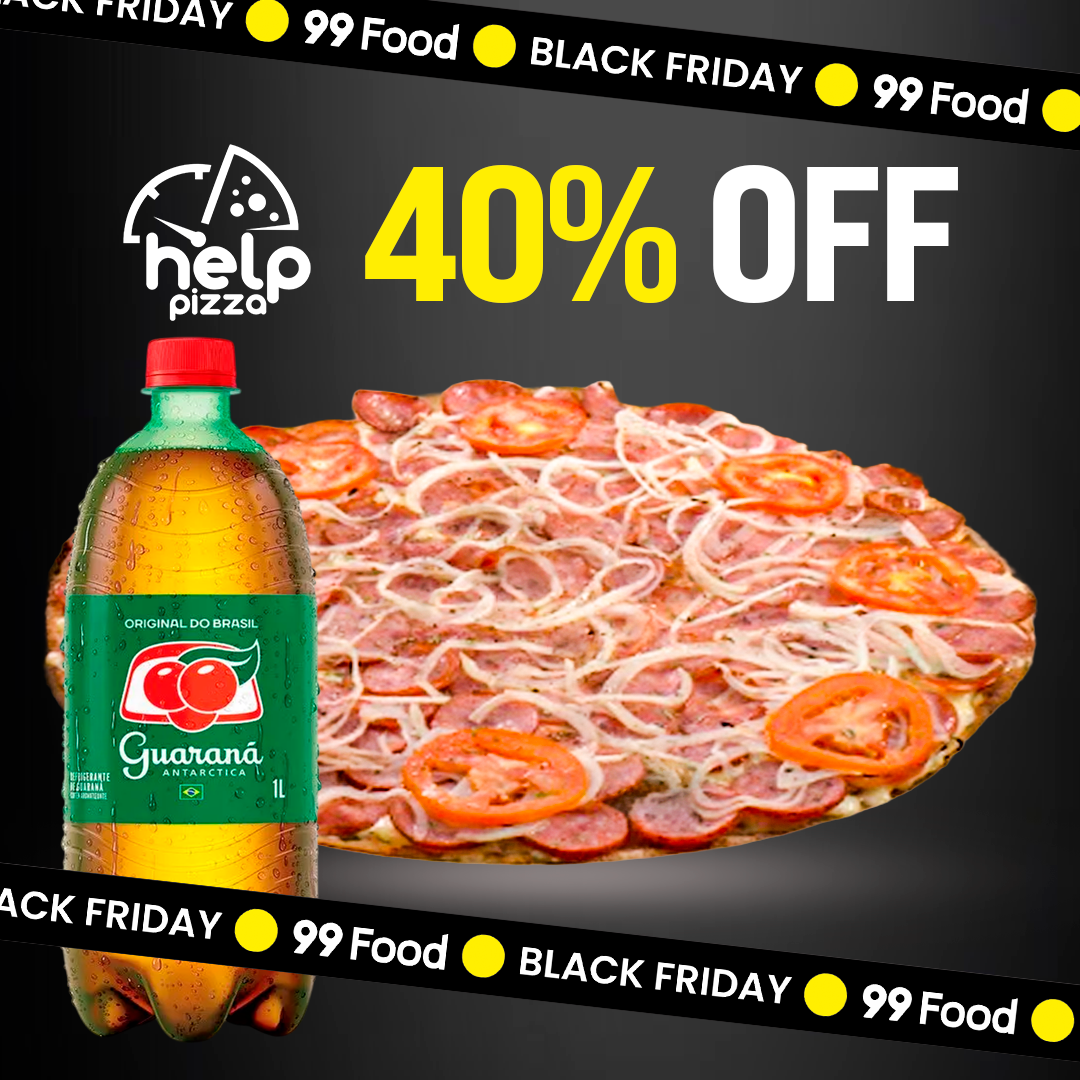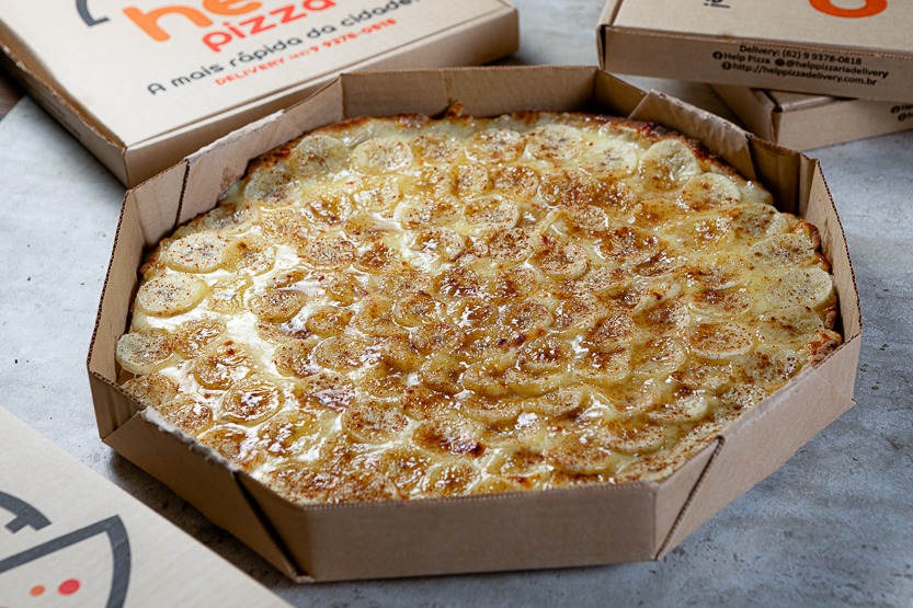 Deliciosa Pizza de "Banana com Canela, muçarela, banana, açúcar e canela com aquela massa crocante que só a "Help Pizza" tem no capricho. Acompanha refri 1l a sua escolha.