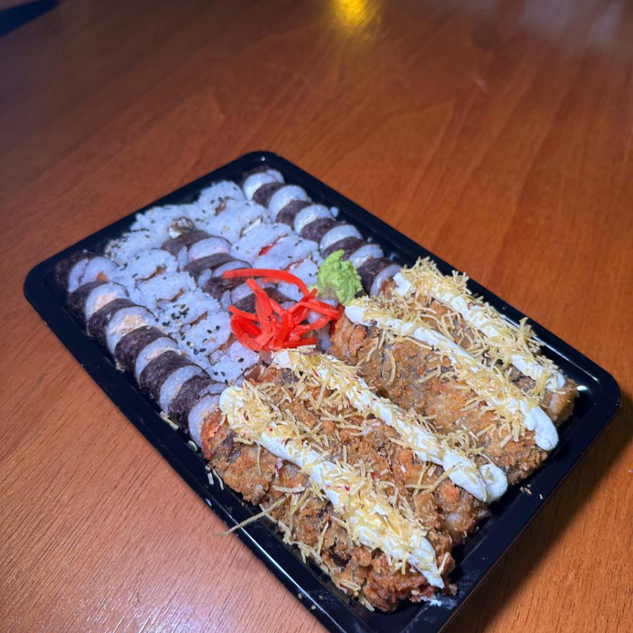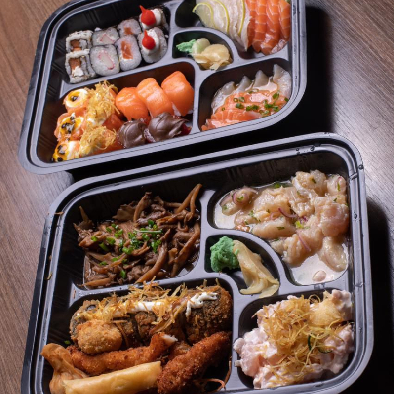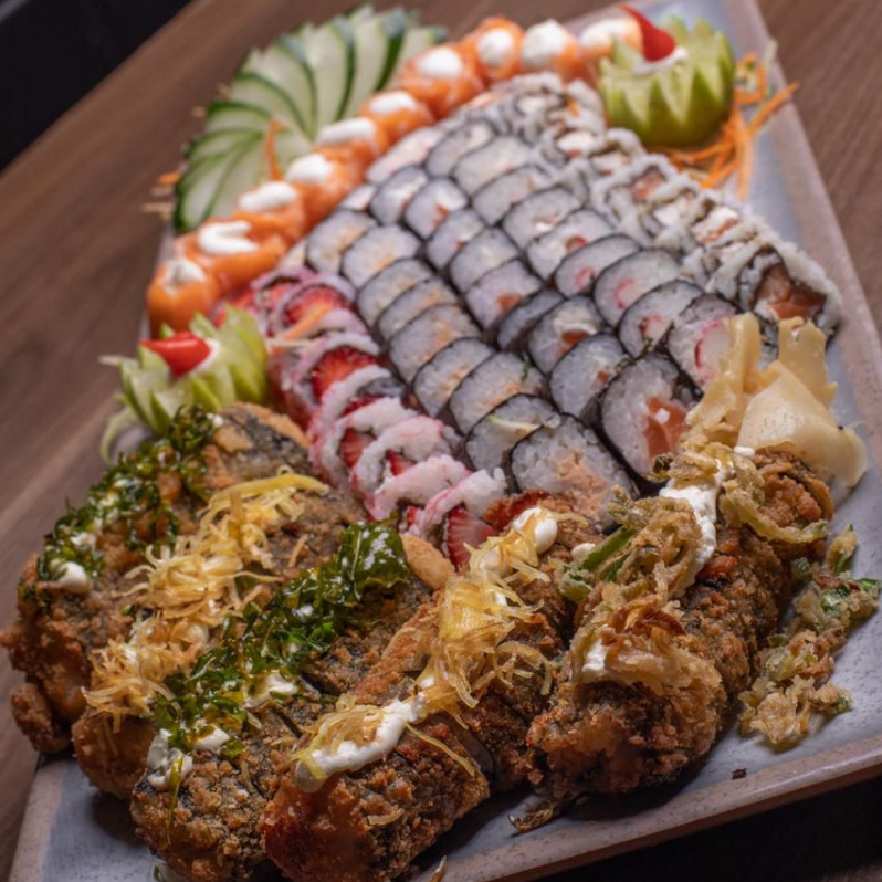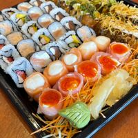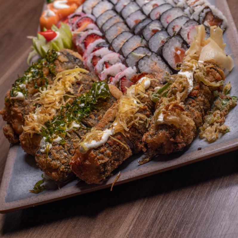 50 sushi 30 hot e 10 joy (imagem meramente ilustrativa)(acompanha te 1 unidade de cada molho e 2 pares de hashi).