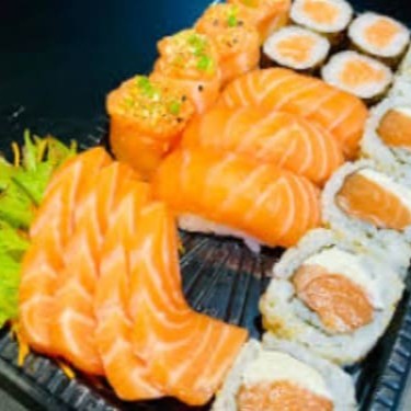 10 ssashimmis de salmão, 10 sashimis de tilápia, 10 Gunkans, 10 niuiris, 10 sushis e 10 hots