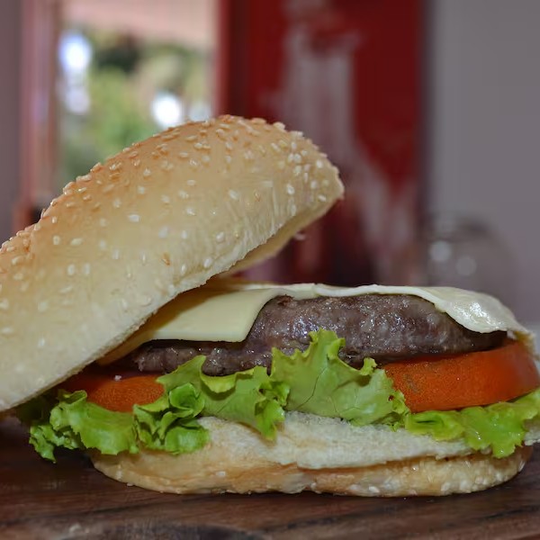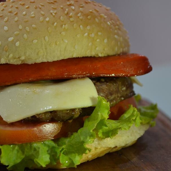 Carne Suculenta Com Bacon Crocante, Mussarela Derretida, Alface, Tomate, Milho E Batata No Pão Macio.