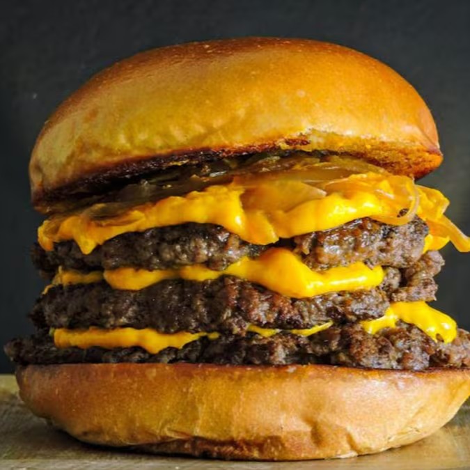 Três Smash Burgers De 100g Cada, Com Cheddar Cremoso Derretido E Pão Brioche Macio. Pura Potência E Sabor Em Cada Mordida!