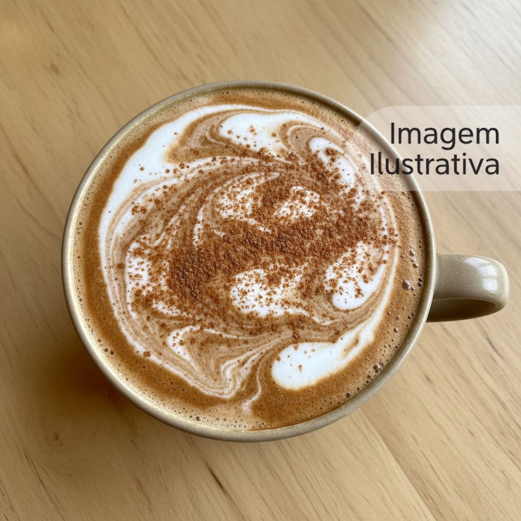 Uma pitada de canela polvilhada sobre um café com leite tradicional, adicionando um toque aromático e saboroso.