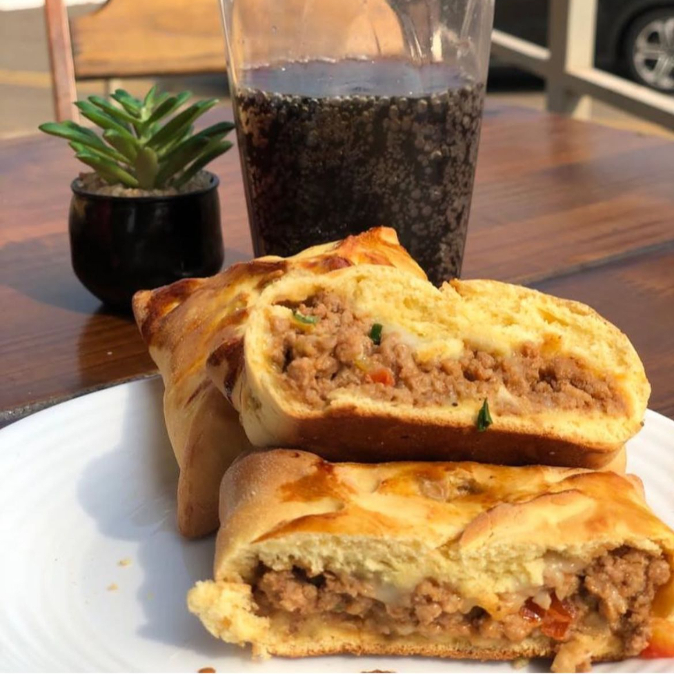 Delicioso salgado artesanal, com hambúrguer bovino, bacon, mussarela, salsicha.