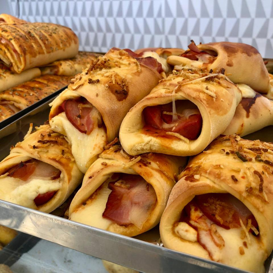 Delicioso salgado de salsicha, com catupiry e mussarela.