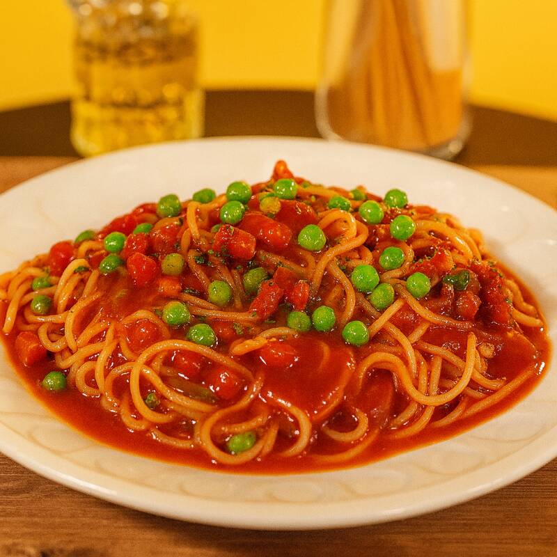 Massa fresquinha envolvido em molho vermelho com linguiça calabresa defumada e ervilhas frescas.