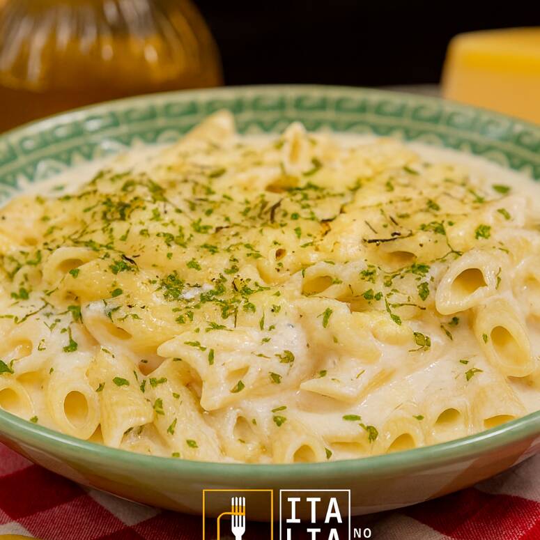 Massa fresquinha envolvido em um delicioso molho branco com queijos (gorgonzola, muçarela, requeijão e parmesão) finalizado com maçarico.