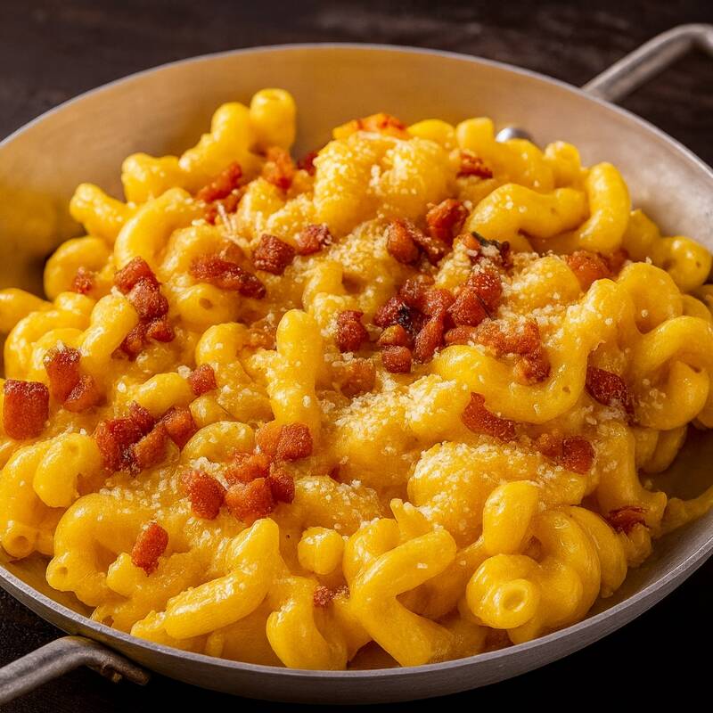Massa caracol fresquinha envolvido em molho super cremoso de queijos, finalizado com pedacinhos de bacon.