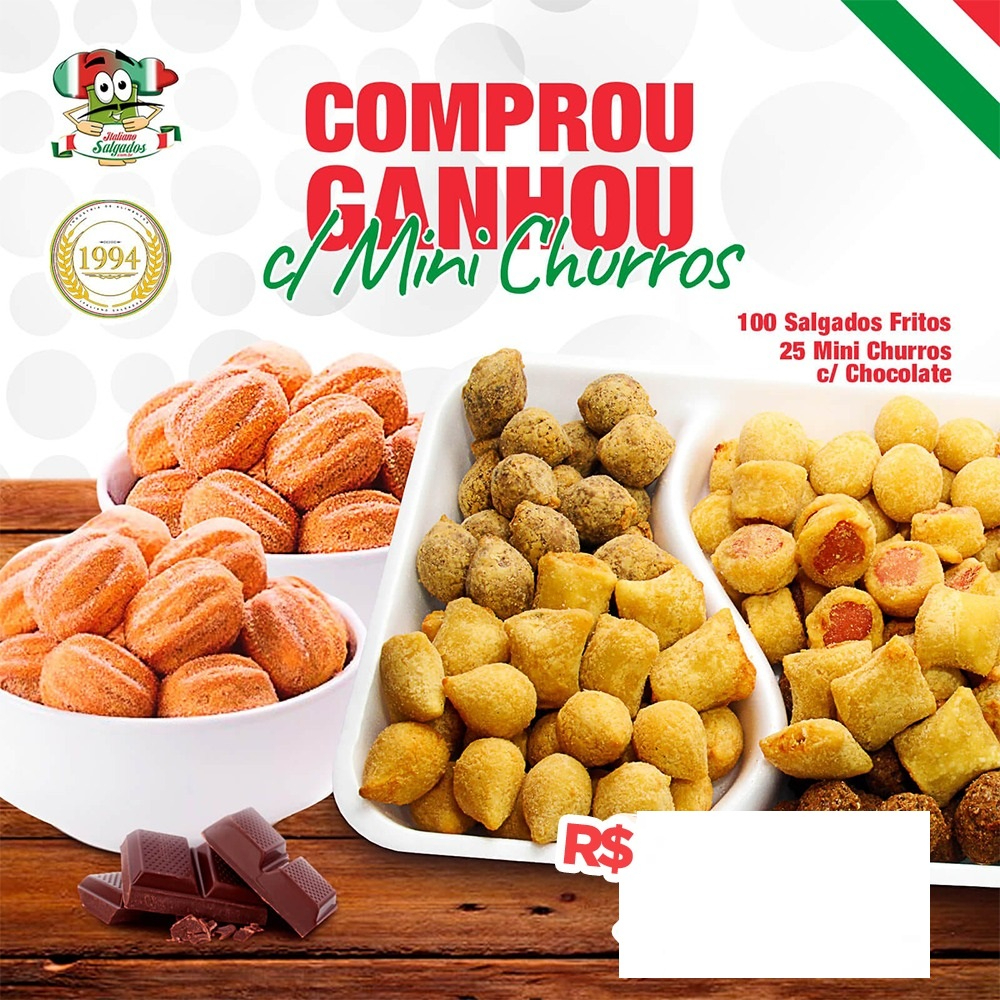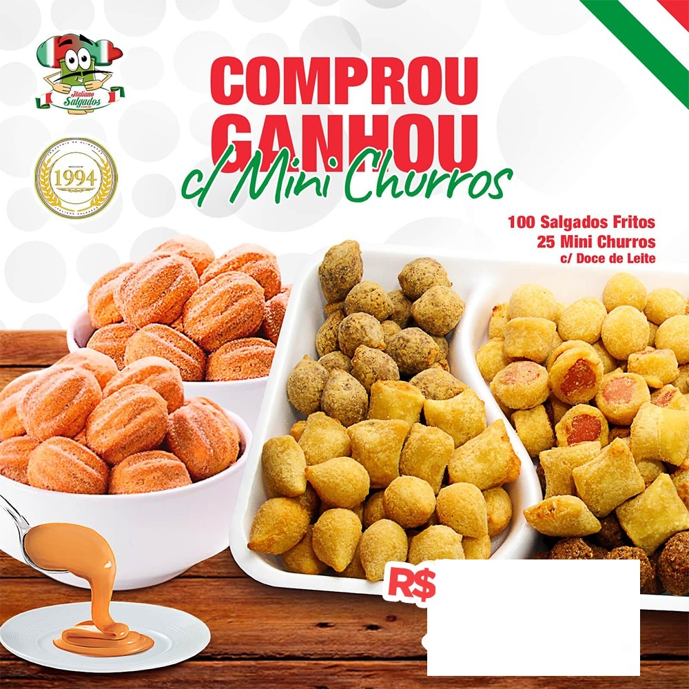 Comprou Ganhou -100 Salgados Fritos +25 Churros Dl
