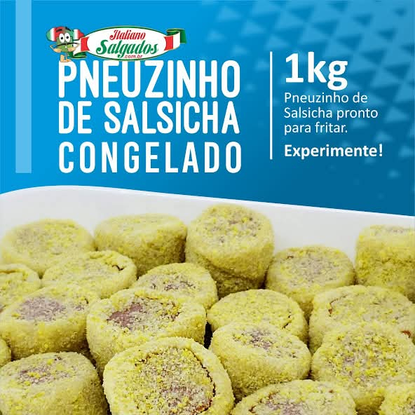 Modo de Preparo: Tem que fritar com oleo quente 180ªc (Sugestão) - 1kg Pneuzinho de Salsicha (empanado de salsicha) - Peso 20g unid. Aprox. Tamanho Padrão Coquetel - Porção de (1kg) Rende Aprox. 50 Unidades