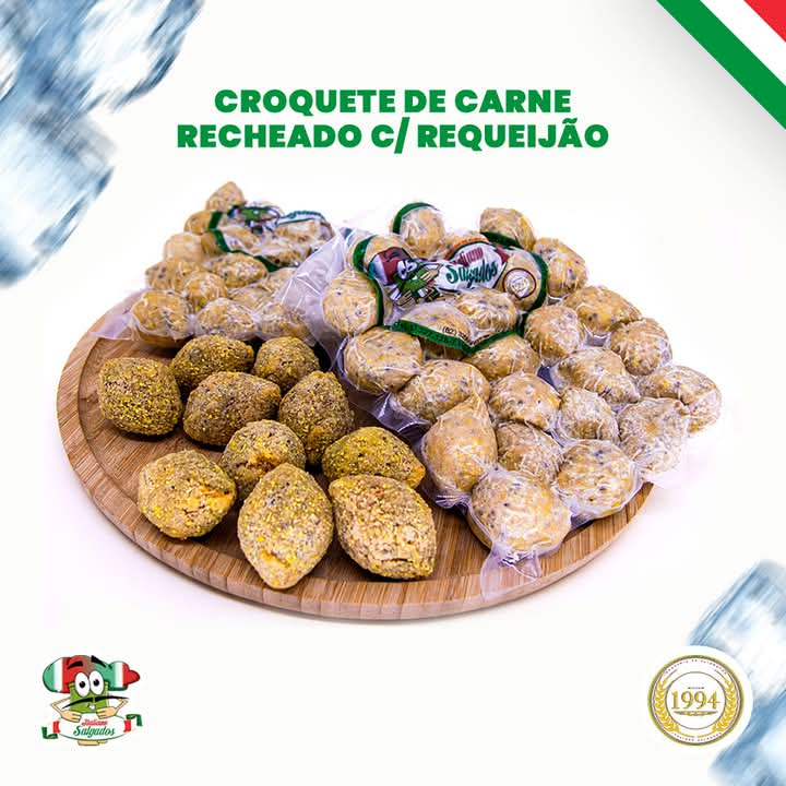 1kg Croquete Carne C Requeijao Cremoso Congelado - Peso 20g Unid. Aprox. Tamanho Padrão Coquetel Copiar Copiar
