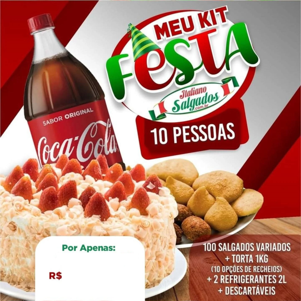 Kit Festa P 10 Pessoas - Salgados - Refri E Torta Leite Ninho