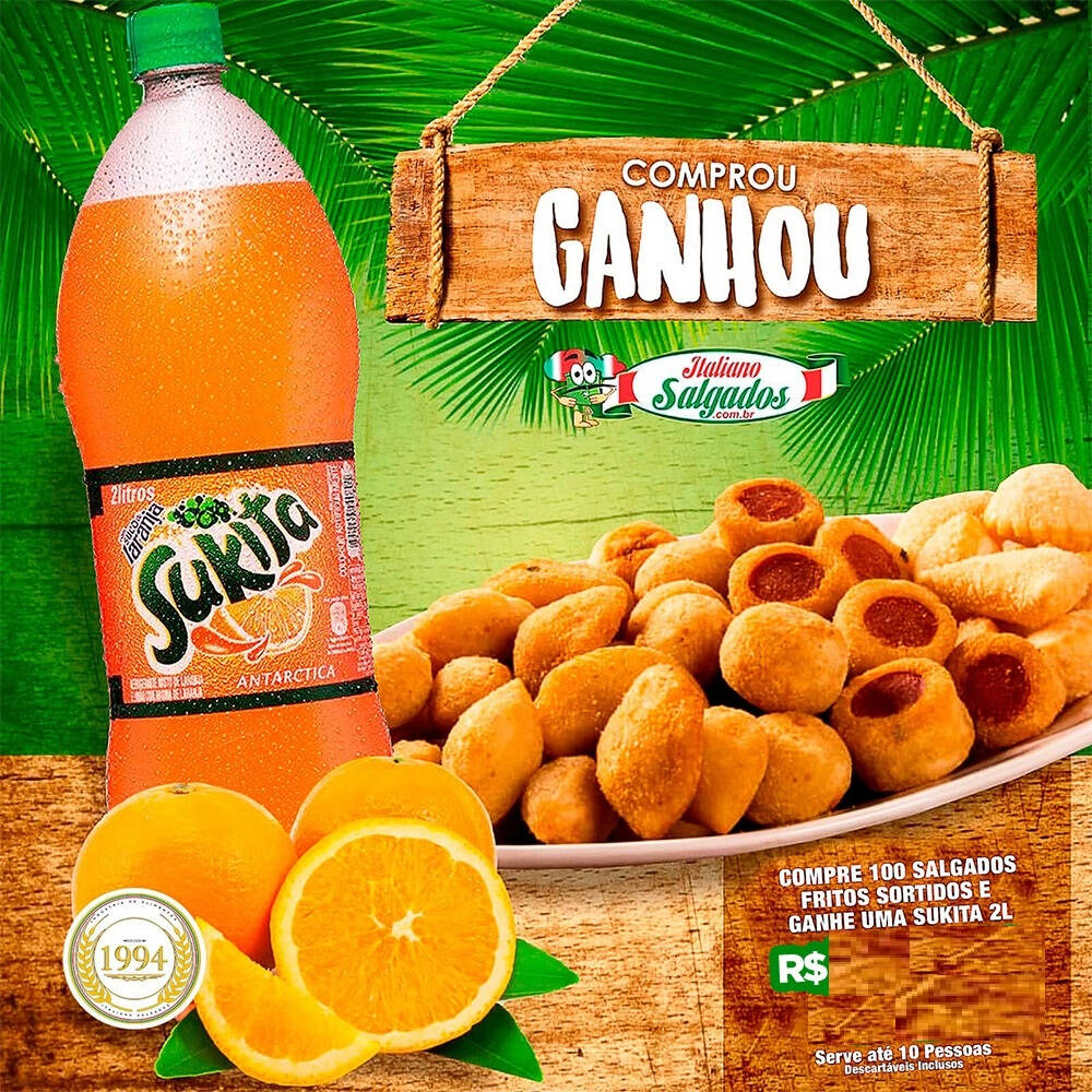 Comprou Ganhou - 100 Salgados Fritos + Sukita 2 Lt