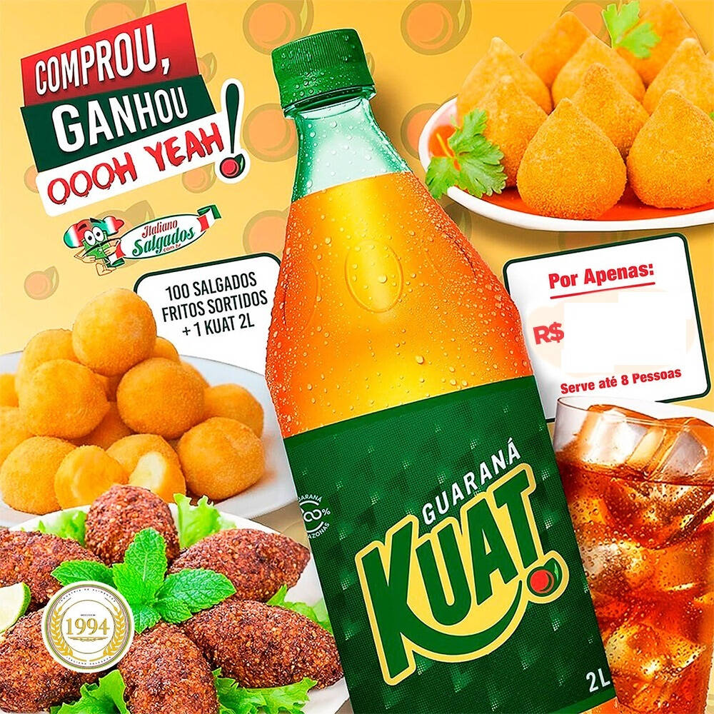 Comprou Ganhou - 100 Salgados Fritos + Kuat 2 Lt