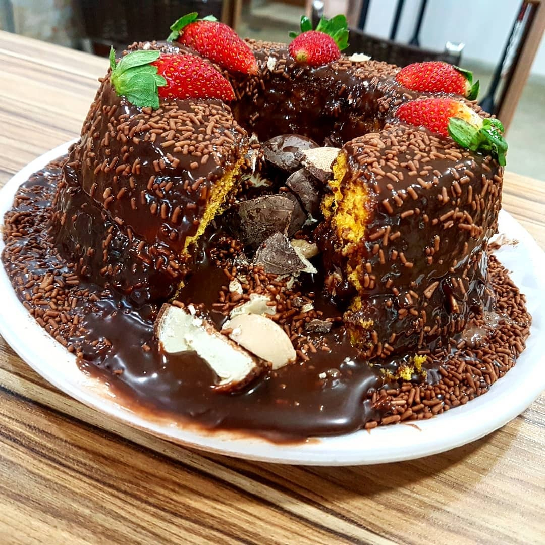 1 Unid. Bolo Caseirinho Vulcao - até 1kg Chocolate - Massa Bolo Baunilha (neutra). Imagem Ilustrativa. Se possivel verifique na loja se tem a pronto entrega antes confirmar o pedido.