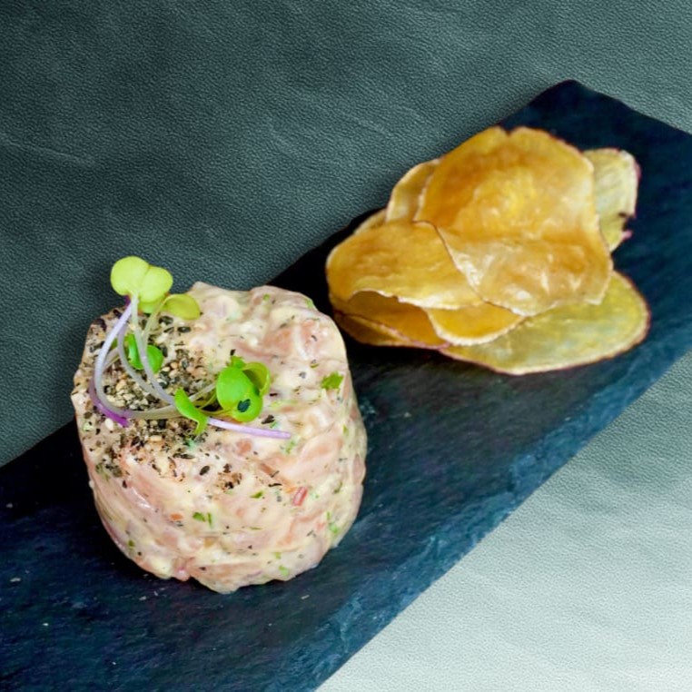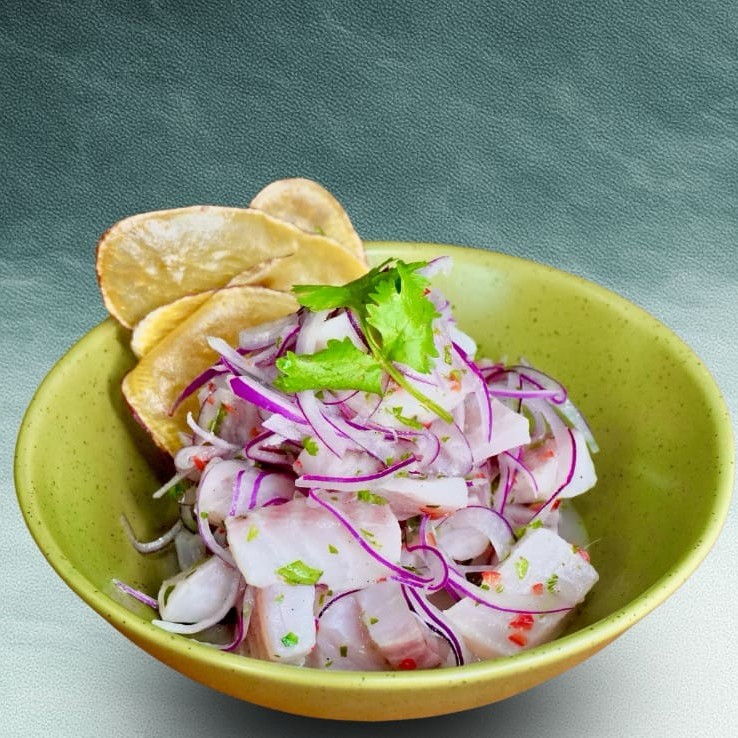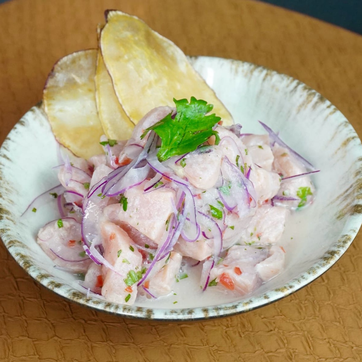 Ilápia fresca cortada em cubos e marinada no nosso molho cítrico artesanal, com limão siciliano, toque de pimenta dedo-de-moça e azeite. Acompanha cebola roxa, coentro fresco e chips crocantes de batata-doce feitos na casa. Um clássico com a leveza e o frescor que surpreendem.