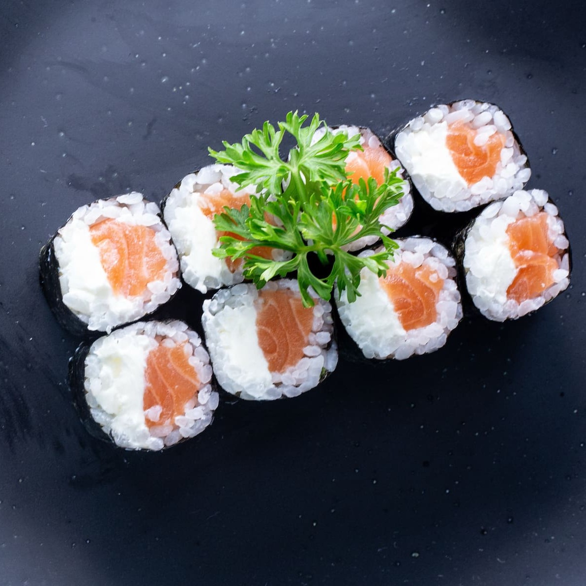 • 4 uramaki de salmão com cream cheese – clássico e equilibrado