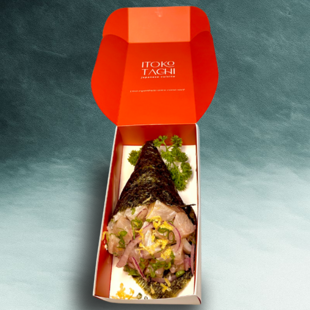 Descubra a harmonia dos sabores em nosso temaki exclusivo: alga nori envolvente, arroz japonês suave e cubos de tilápia perfeitamente temperados com um mix especial de especiarias. Finalizado com cebolinha fresca e raspas de limão tahiti, cada mordida traz um toque cítrico e refrescante que vai surpreender seu paladar. Um convite irresistível à sofisticação e ao frescor!