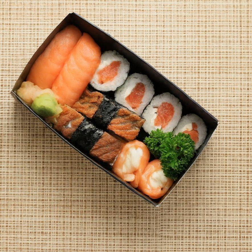 Uma seleção completa para compartilhar! Combina variedade, frescor e sabor com: 5 Uramakis (salmão e spice) 5 Hossomaki shakemaki 5 Nin Niku Eby (camarão) 5 Gunkan e Nigiri de salmão 5 Nigiri skin 10 Hot Philadelphia 10 Sashimis de salmão Perfeito para dividir com quem entende de sushi!52 peças | Serve até 3 pessoas