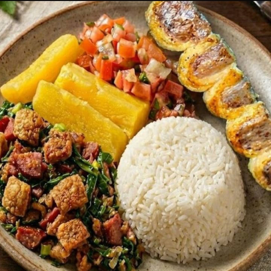 Arroz, Feijão Tropeiro, Mandioca e Vinagrete