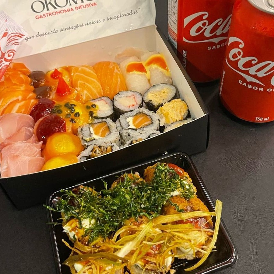 (02 sashimis de salmão, 02 sashimis de tilápia, 05 hots, 03 Gunkans, 02 Niguiris, 06 Sushis variados)
