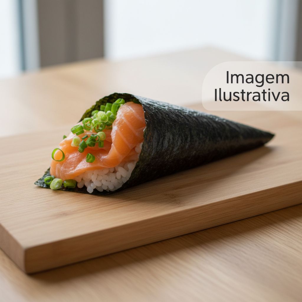 Delicioso temaki recheado com salmão fresco, cream cheese cremoso