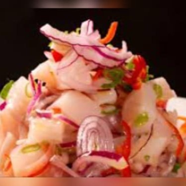 Pequenos cubos de peixe branco com limão coentro cebola roxa pimenta dedo de moça e pimenta de cheiro