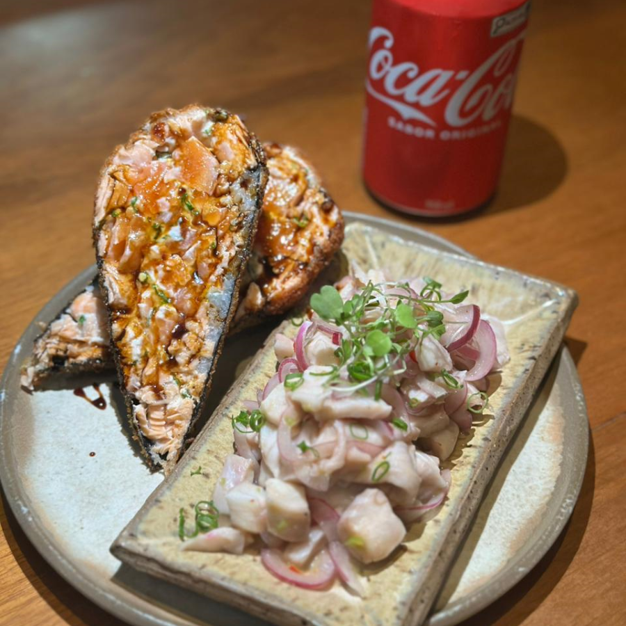 01 Temaki Hot Salmão e Cream Cheese e 01 Porção de Ceviche + 01 Coca Cola