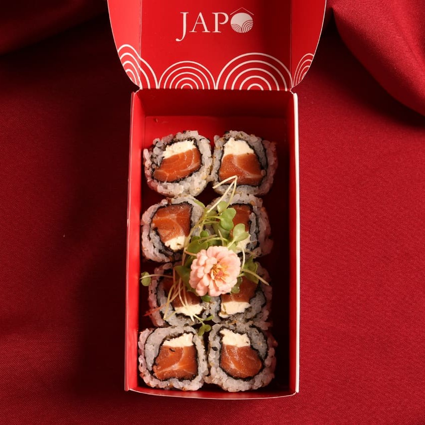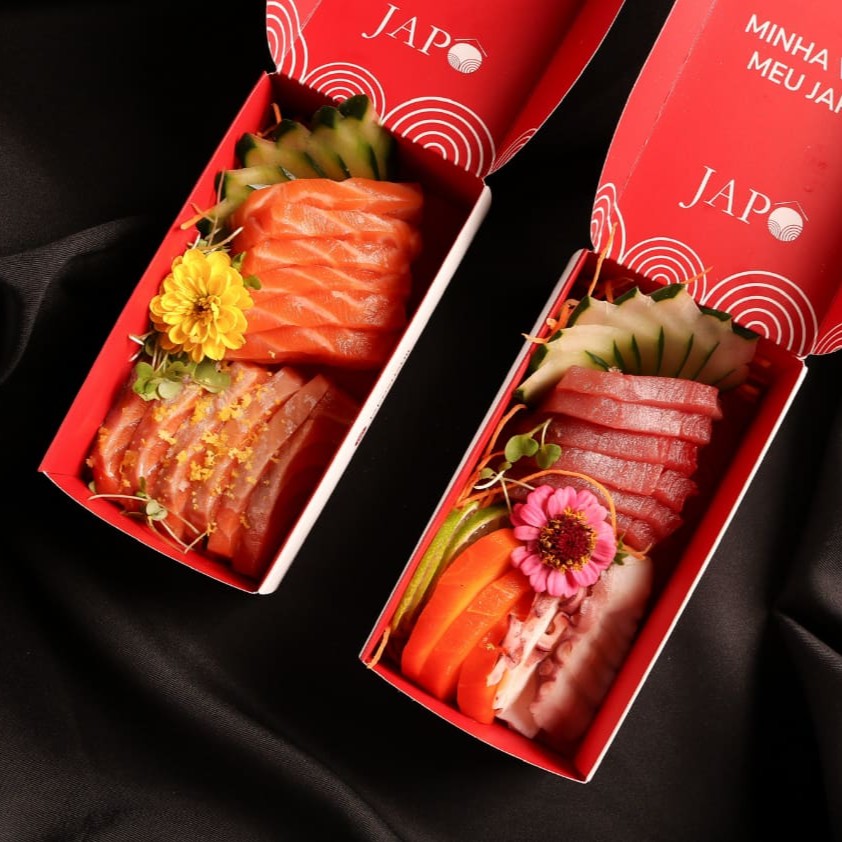 4 Sashimis de salmão; 2 Niguiris (1 salmão, 1 peixe branco); 4 Hossomakis (2 Filadélfia, 2 Tekamaki); 4 Uramakis (2 Filadélfia, 2 California); 2 Jyos (salmão com patê de salmão)