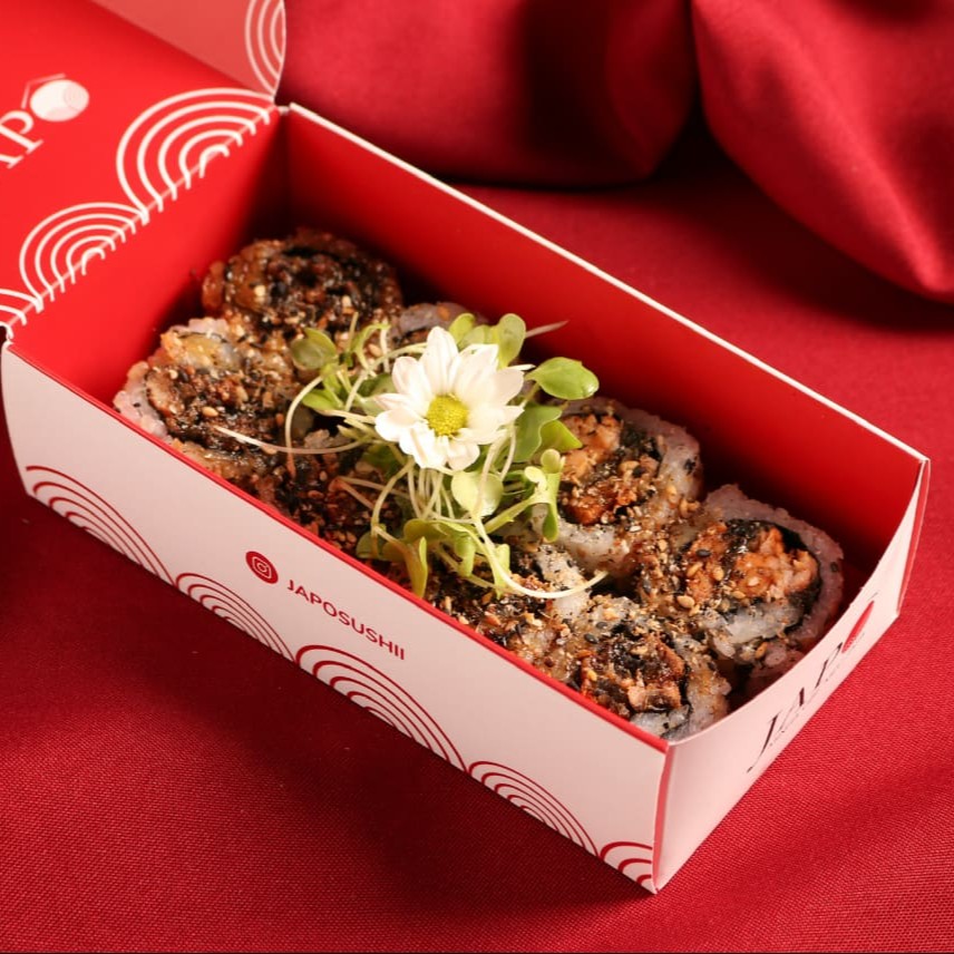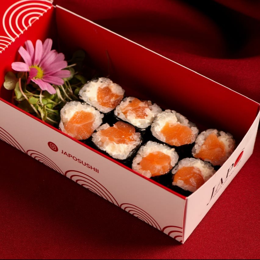 8 Hossomakis (4 Filadélfia, 4 Tekamaki); 8 Uramakis (4 Filadélfia, 2 Skin, 2 California); 8 Hot Rolls (Filadélfia); 8 Niguiris (4 salmão, 2 peixe branco, 2 skin)