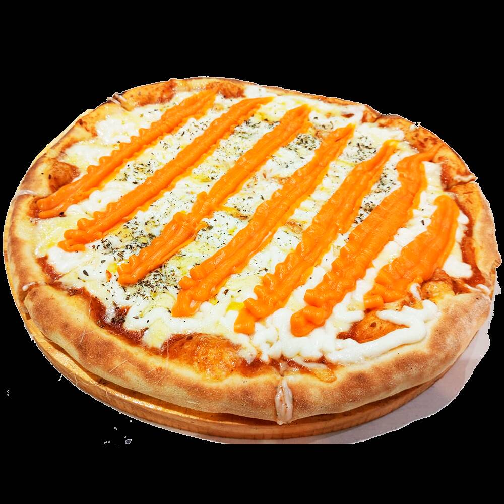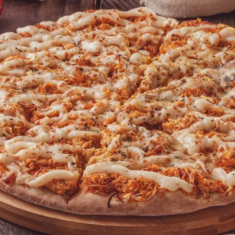 Frango, Mussarela selecionada, cheddar cremoso e catupiry, harmonizados com um toque de orégano, sobre massa artesanal de fermentação controlada, assada até o ponto ideal.