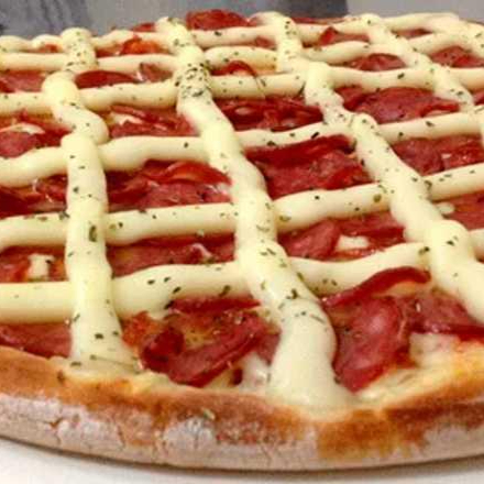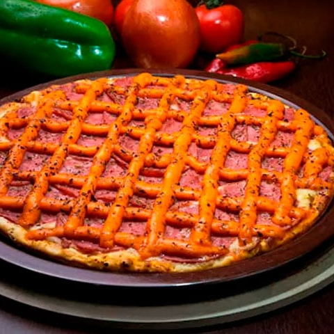 Mussarela derretida, calabresa fatiada, cheddar cremoso, bacon crocante e um toque de orégano, sobre massa artesanal assada na hora.