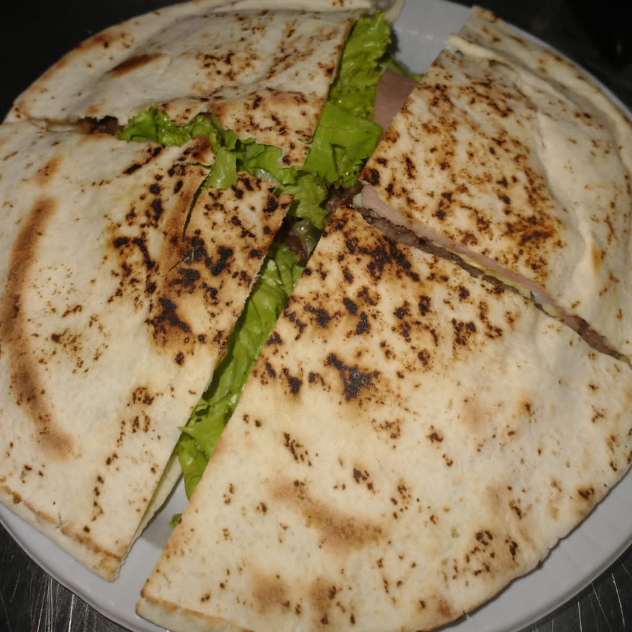 Pão sirio 2 frangos 2 fatias de mussarela 2 ovos alface tomate abacaxi