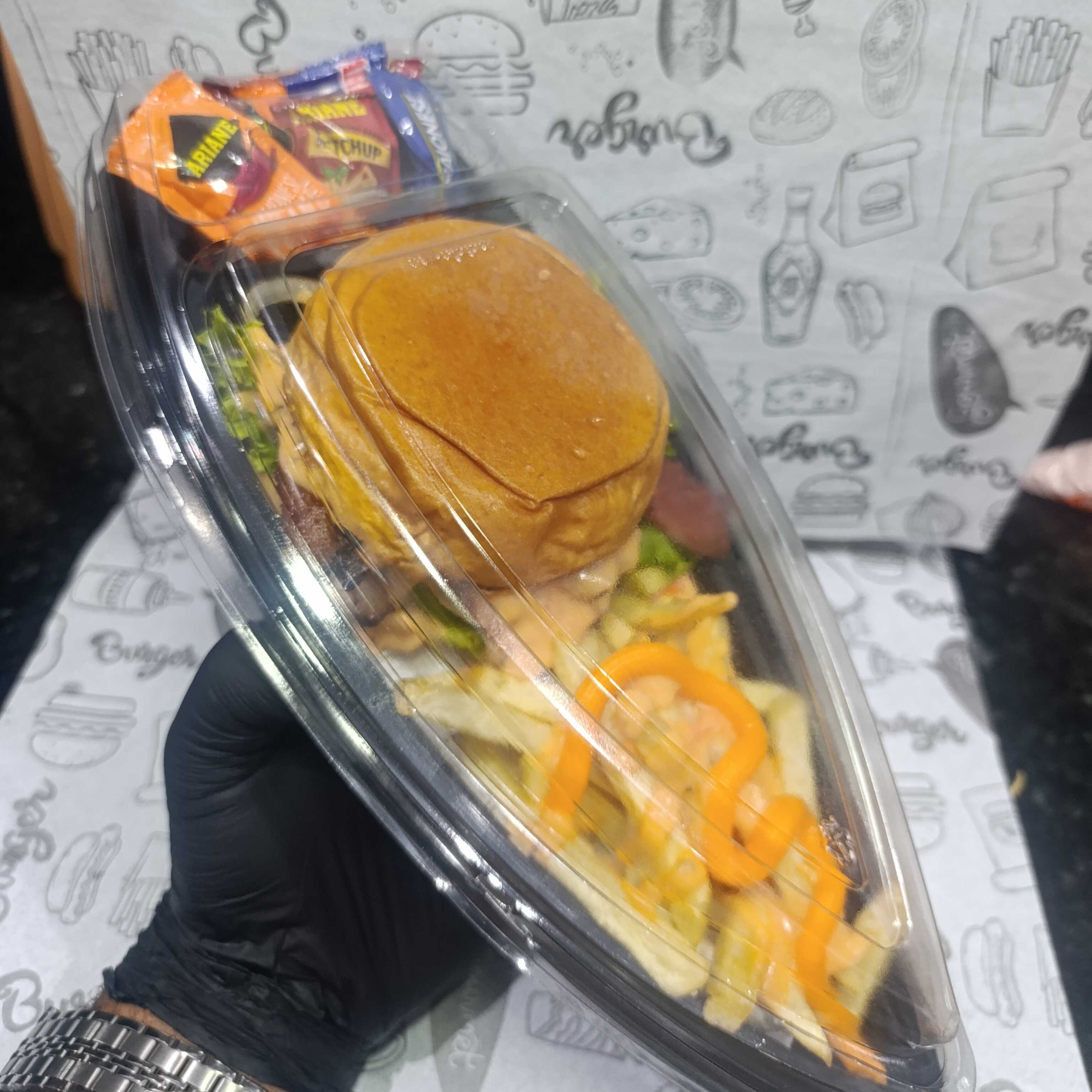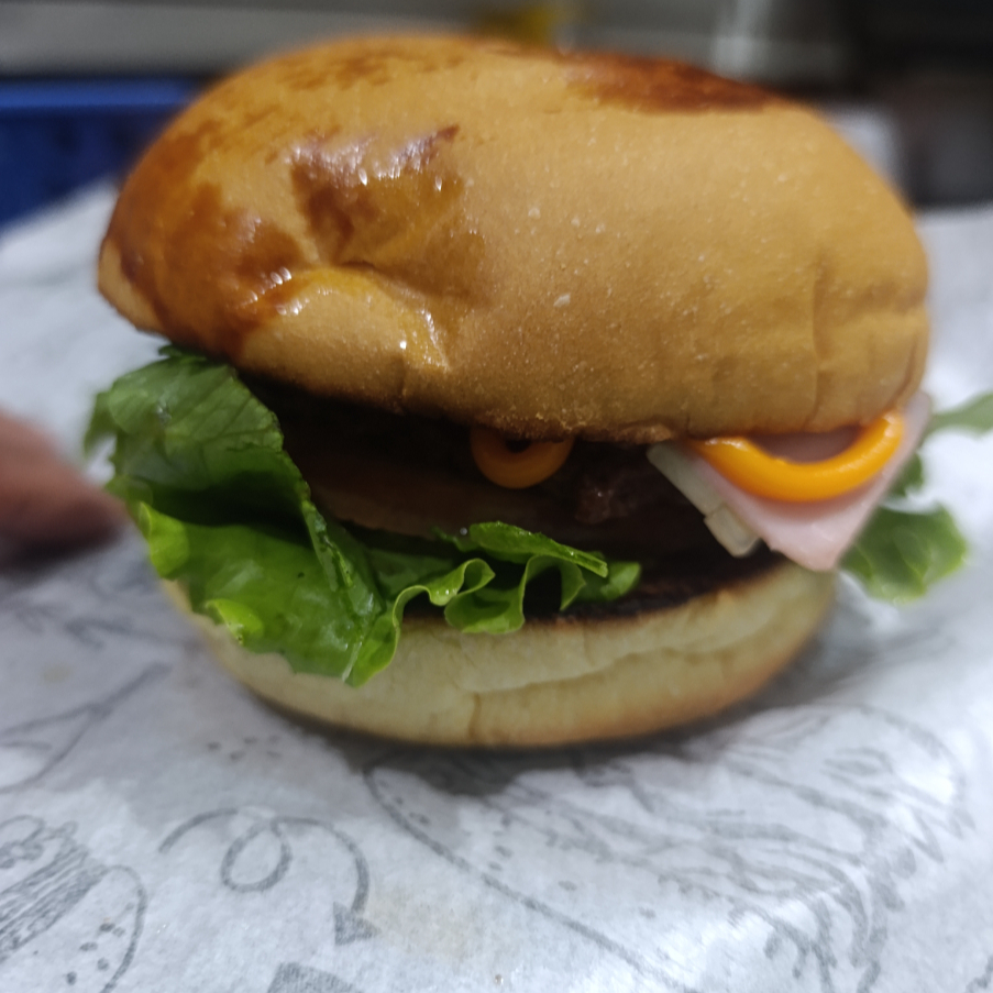 Hambúrguer mussarela presunto alface tomate milho batata cheddar abacaxi