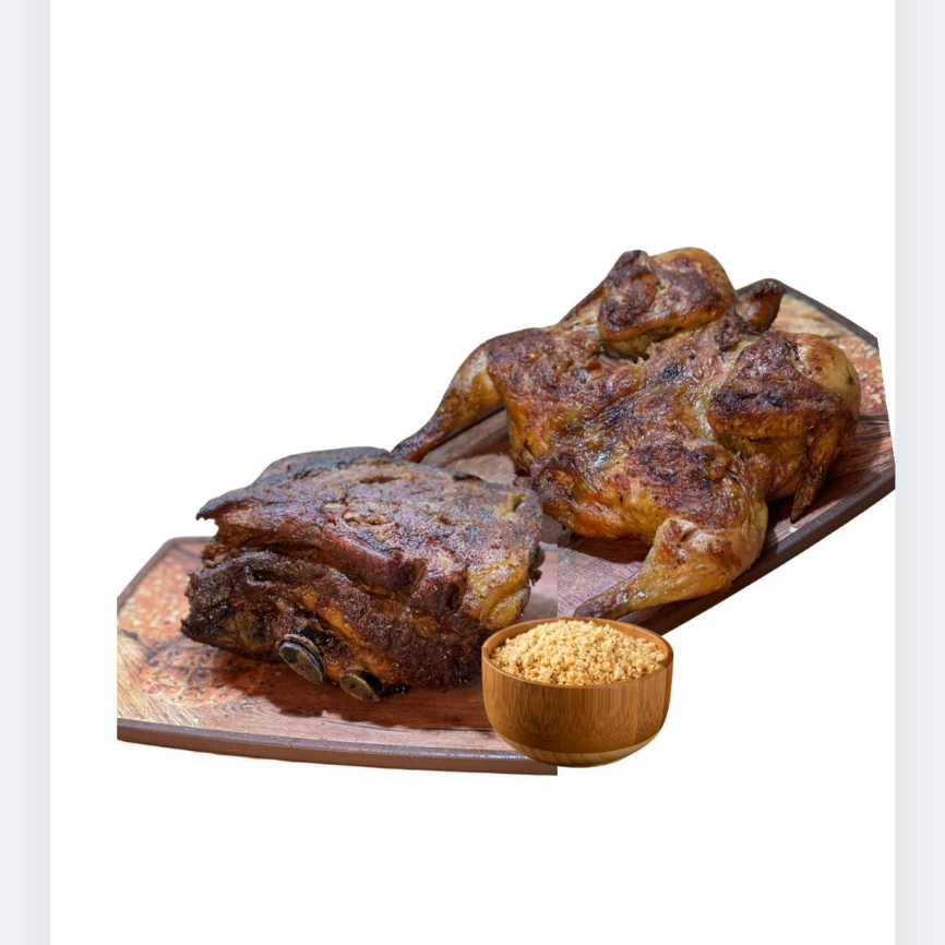 Misto na Brasa – Meio Frango + 500g de Costela Uma combinação perfeita para quem quer variedade e muito sabor! Nosso meio frango assado na brasa, dourado e suculento, preparado no ponto certo, acompanhado de 500g de costela bovina macia, assada lentamente até ficar desmanchando. Tudo feito na brasa, garantindo aquele sabor defumado irresistível que só a JL Assados tem. Ideal para dividir ou para quem gosta de comer bem!