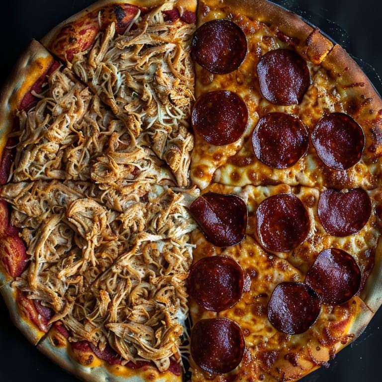"Apreciada na categoria ""Top 1"", apresentamos a pizza ""Metade Frango com Catupiry e metade de Calabresa (G)"". Esta pizza é uma combinação perfeita de sabores, com uma metade generosamente coberta por frango suculento, harmonizado com o cremoso e levemente salgado Catupiry. A outra metade é recheada com uma deliciosa calabresa, cujo sabor intenso e ligeiramente picante garante um experiência gastronômica única. Uma opção ideal para quem busca variedade e não abre mão da qualidade e do sabor"