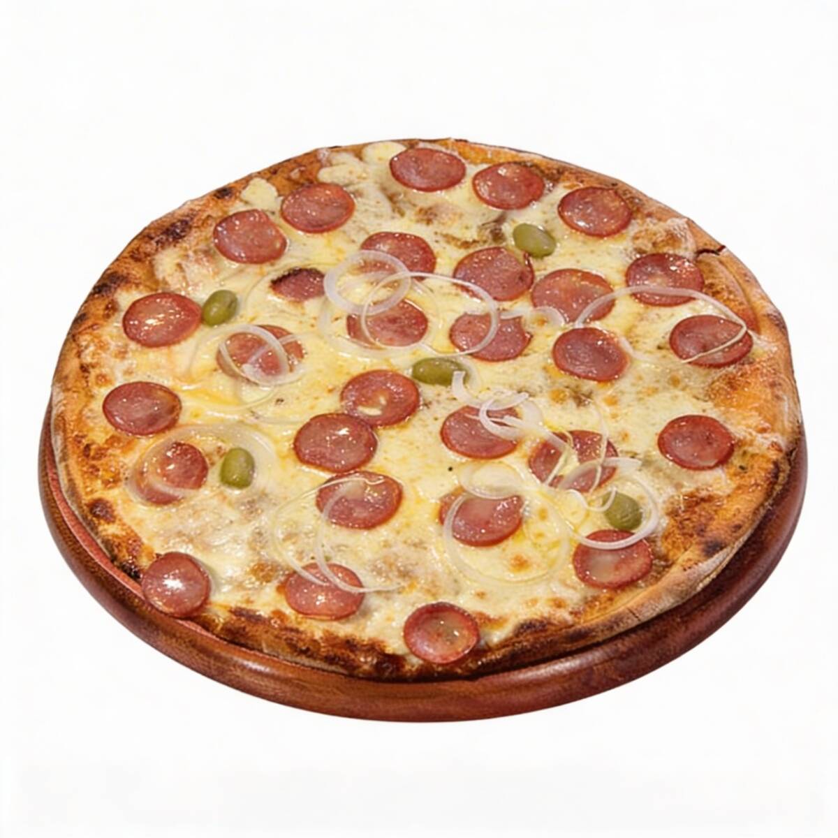 Aproveite a deliciosa 'Pizza de Calabresa sem Cebola' da nossa categoria 'Pizzas Promocionais '. Com uma massa crocante e levemente dourada, é coberta por generosas fatias de calabresa suculenta, cuidadosamente selecionadas para garantir o sabor autêntico e intenso. A ausência de cebola faz desta, a escolha perfeita para os que preferem saborear a calabresa em sua essência. Uma pizza irresistível que vai deixar o seu paladar pedindo por mais!