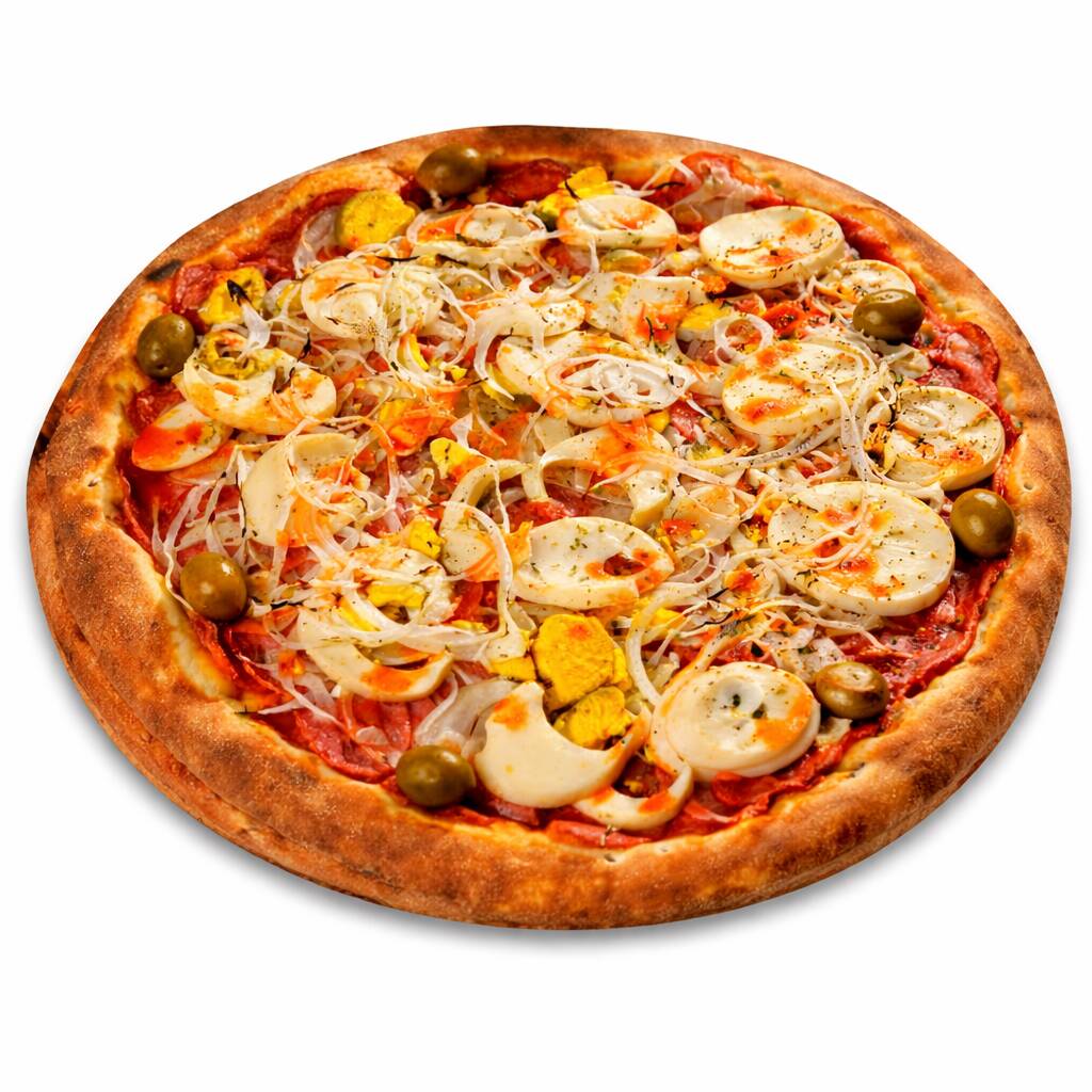 Molho, mussarela , calabresa , ovos , cebola , azeitona , pimenta calabresa , orégano