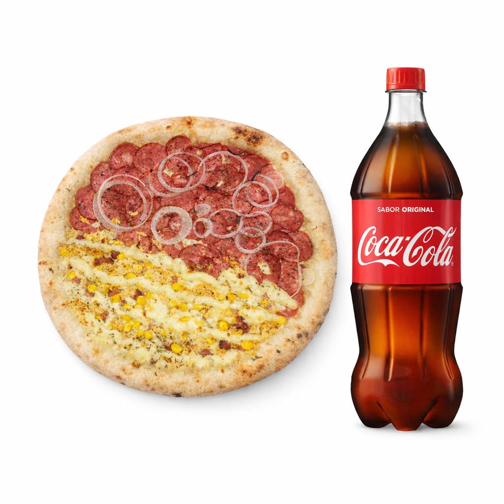 Combo Pizza Grande 1 2 Calabresa E 1 2 Frango Bacon + Coca-cola 1 Litro