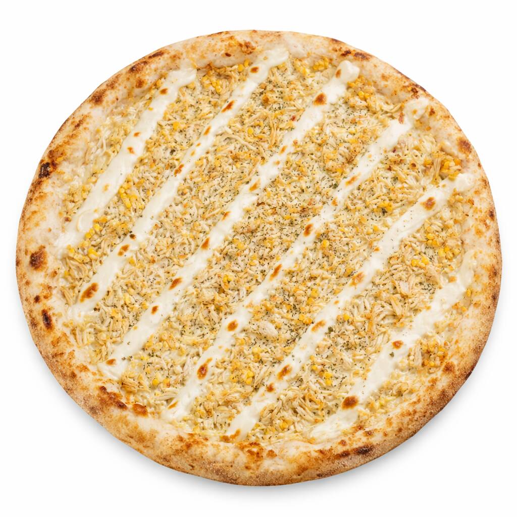 molho, mussarela,frango desfiado,milho,requeijao, oregano