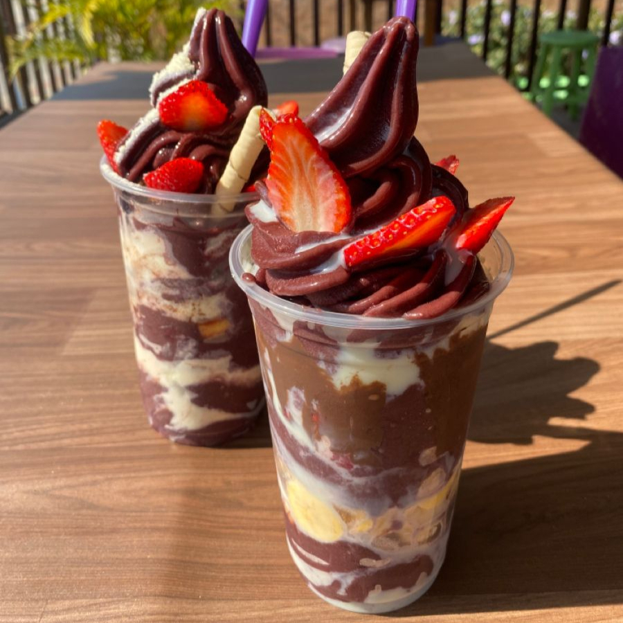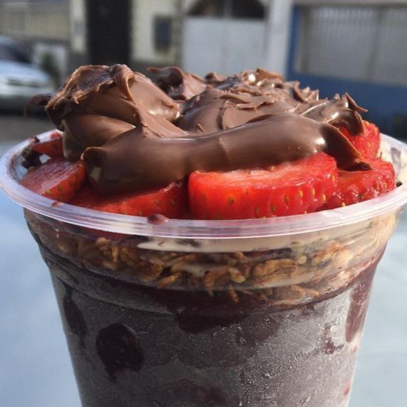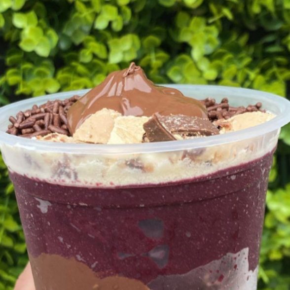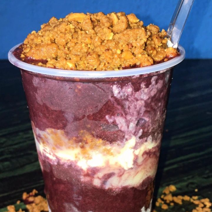 Açai, leite condensado, leite em pó, granola e paçoca.