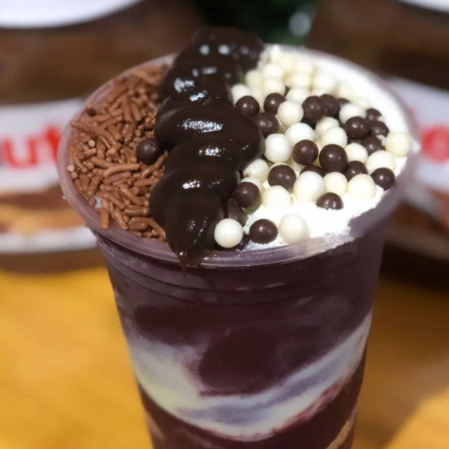 LEITE CONDENSADO, AÇAI, CHOCOBOLL, CALDA DE CHOCOLATE GRANOLA E LEITE EM PÓ.