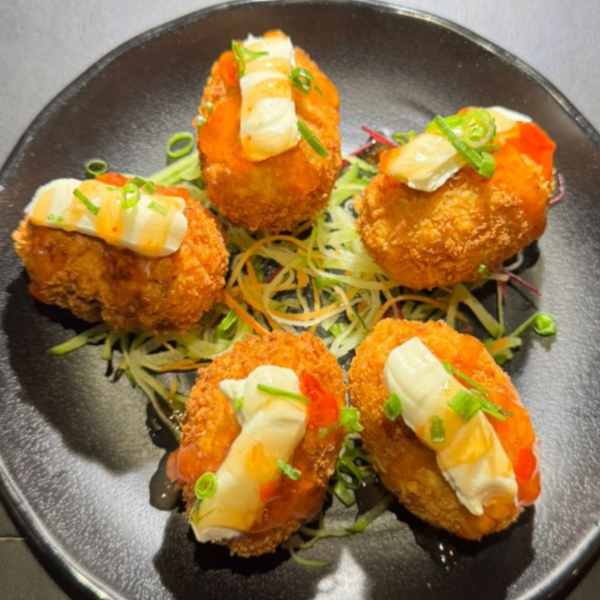 Bolinhos Crocantes de Salmão e Tilápia Empanados na Farinha Panko, Temperados com 3 Pimentinhas e Recheados com Cream Cheese. Uma Explosão de Sabor Oriental! Acompanha 1 Hashi, 2 Shoyus e 1 Tarê.