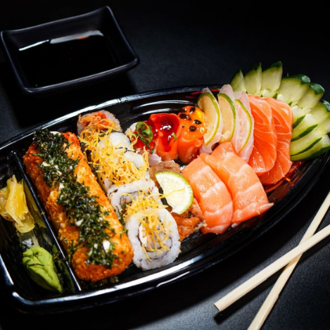 5 Sashimis de Salmão, 5 de Tilápia, 5 Niguiris Variados, 10 Sushis Variados e 5 Hot Philadelphia. Seleção Especial do Chef Para Compartilhar! Acompanha 2 Hashis, 3 Shoyus e 1 Tarê.
