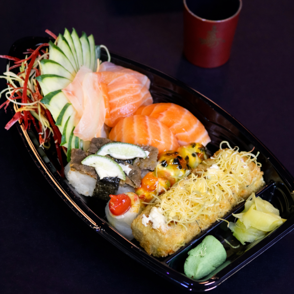 Tataki, Ceviche, Carpaccio de Tilápia, 6 Sushis Variados, 3 Gunkans, 3 Sashimis de Salmão, 3 de Tilápia, 1 Temaki de Salmão Cru, Sunomono, 2 Acarajés Japoneses, 2 Iscas de Tilápia, 2 Gunkans Supremo, 3 Hot Philadelphia e 1 Gunkan Romeu e Julieta. Uma Imersão Completa no Sabor Japonês! Acompanha 2 Hashis, 3 Shoyus e 1 Tarê.