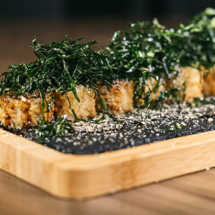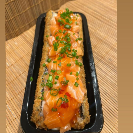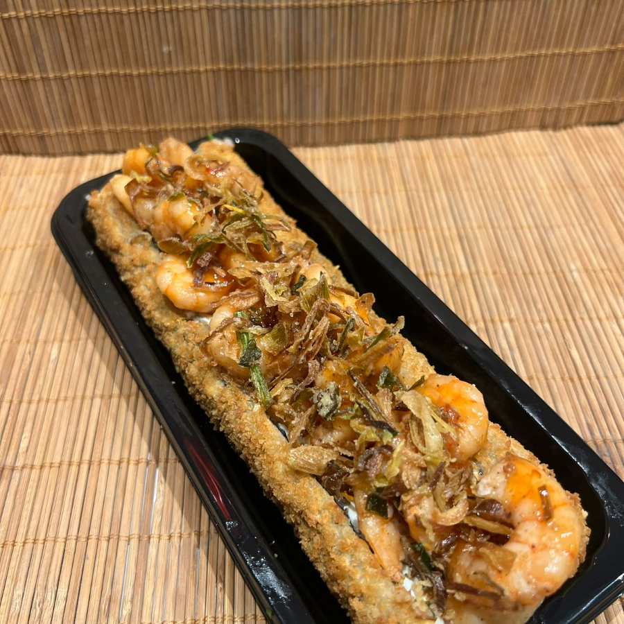 Delicioso temaki recheado com camarão fresco, cream cheese cremoso e cebolinha, envolto em alga nori