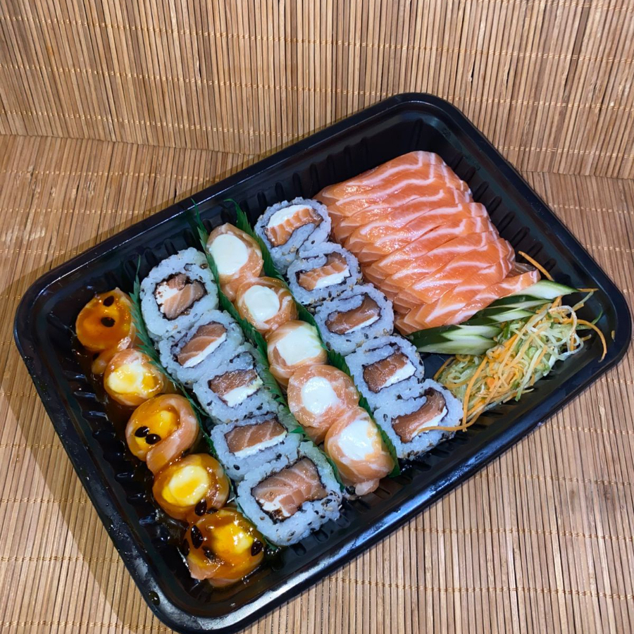 Combo 44 Peças - 6 sashimis de salmão, 6 sashimis de tilapia, 5 niguiris variados, 7 gunkan's variados, 10 hot's filadelfia, 10 sushis variados,