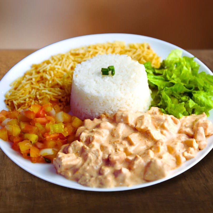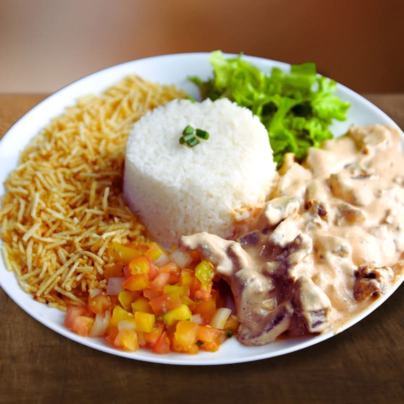 Delicioso Prato Executivo Feito com: -Strogonoff de Frango -Arroz -Salada Especial(Separada) -Batata Palha Trabalhamos com os melhores ingredientes para melhor te atender!Bom apetite...