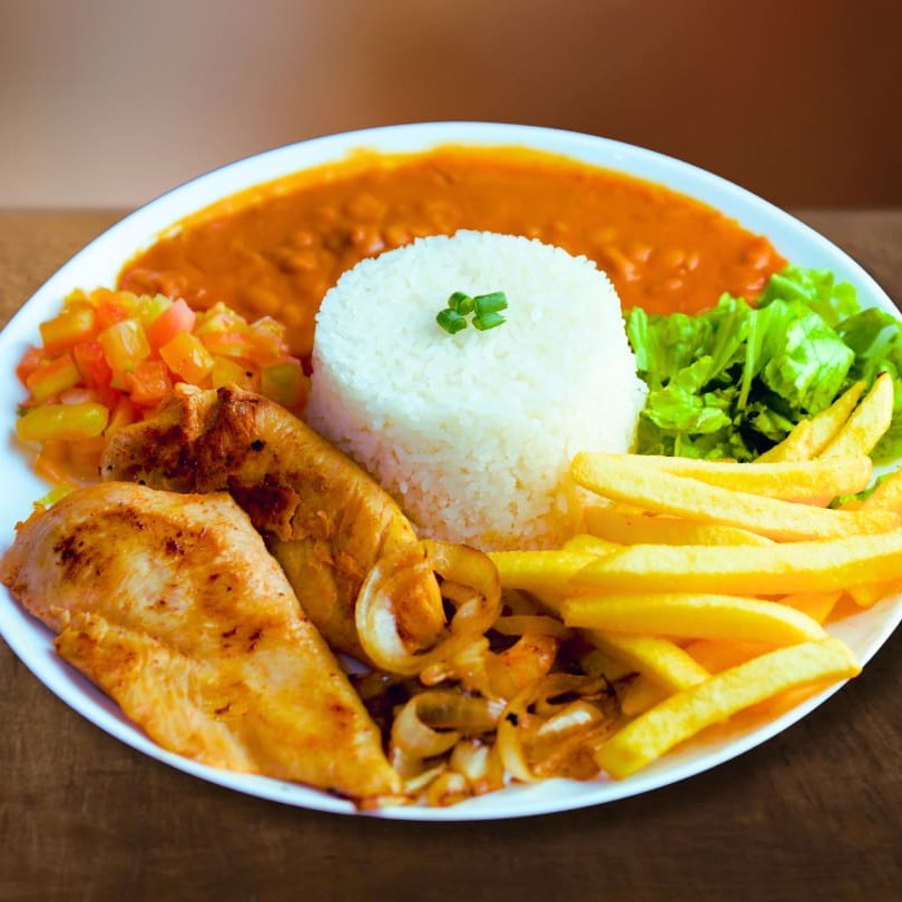 Delicioso Prato Executivo Feito com: -Filé de Frango acebolado -Arroz -Feijão -Salada Especial(Separada) -Batata Frita Trabalhamos com os melhores ingredientes para melhor te atender!Bom apetite...